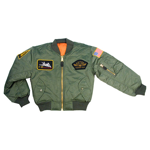 Kinder-Bomberjacke im Top-Gun-Stil mit stilvollen Aufnähern.