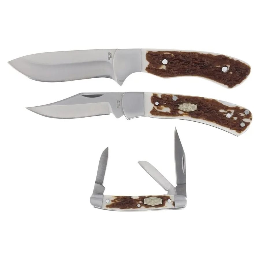 Set mit insgesamt drei Messern aus rostfreiem Stahl, geliefert in einer Geschenkbox aus rostfreiem Stahl. Weitere Informationen