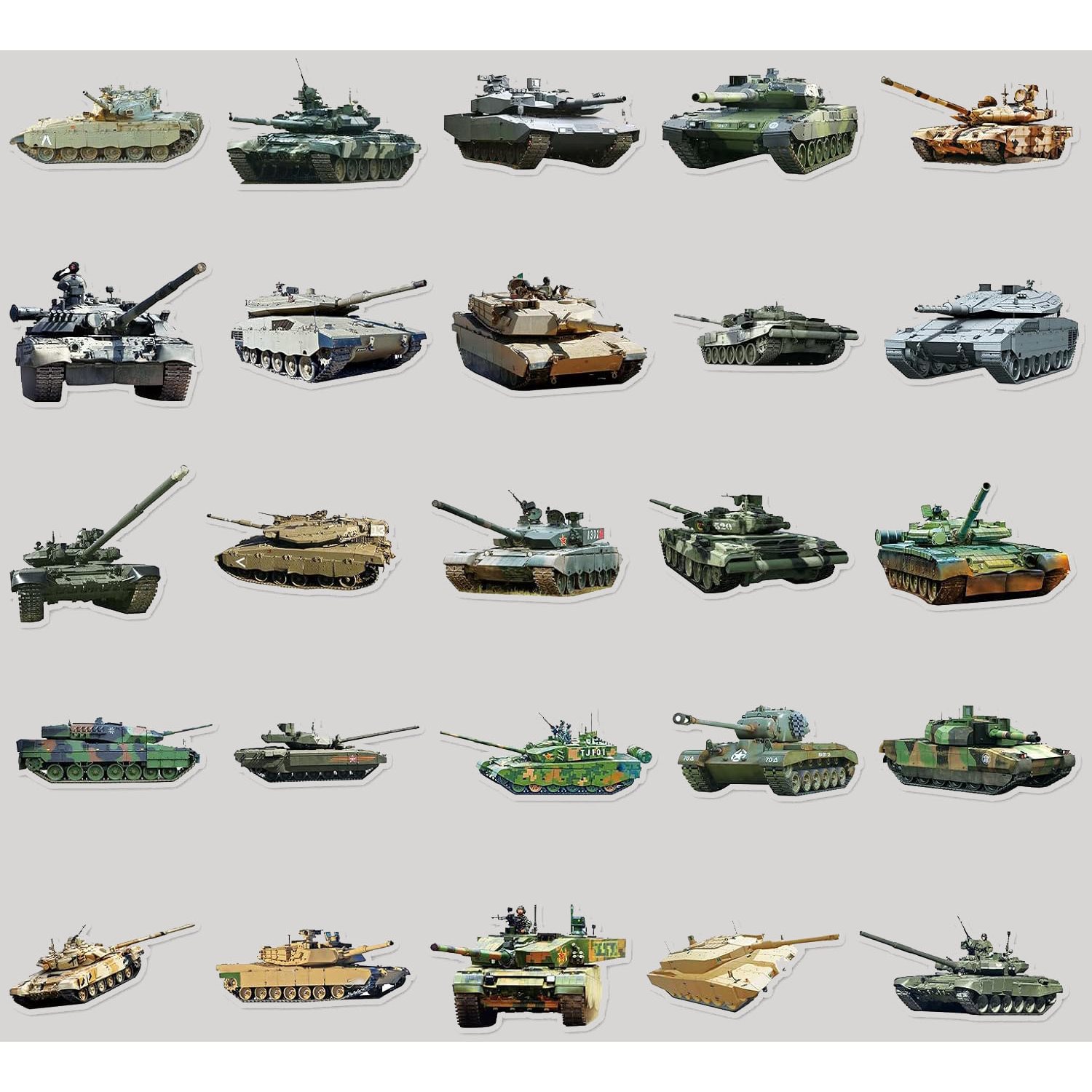 Set mit 50 farbigen Aufklebern verschiedener Panzertypen.