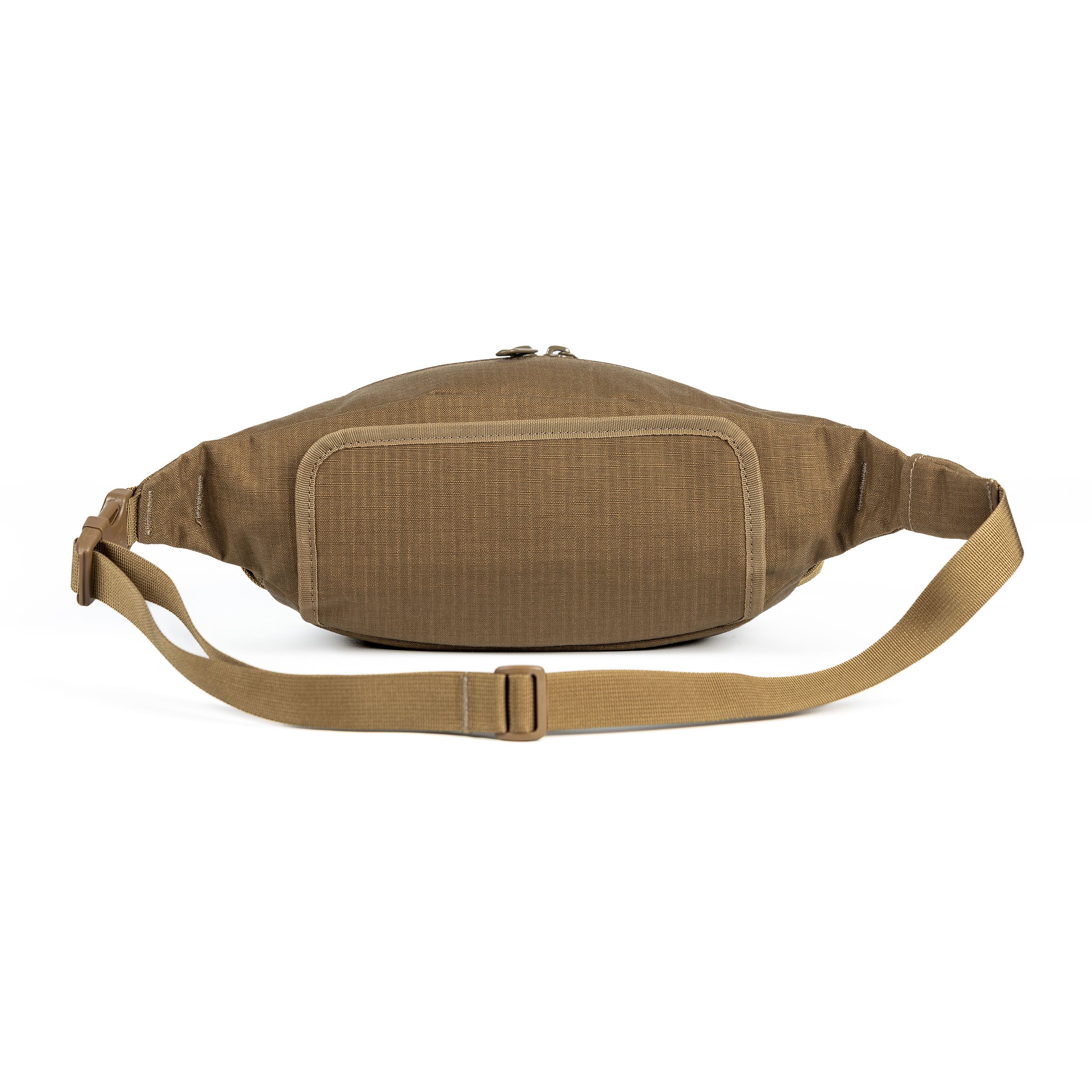 Der Tragegurt der Gürteltasche ist längenverstellbar und wird mit einer Kunststoffschnalle und einem verdeckten G-Haken befestigt. Er lässt sich schnell abnehmen, und die gesamte Gürteltasche kann mithilfe des Klettverschlusses auf der Rückseite an jedem Rucksack aus der PUGIO-Produktreihe befestigt werden. Die Vorderseite der Gürteltasche verfügt über eine flache Tasche für Kleingut, an den Seiten befinden sich Stoffschlaufen. Das Hauptfach ist über einen Zwei-Wege-Reißverschluss zugänglich und im Inneren finden Sie ein kleineres Organisationsfach.