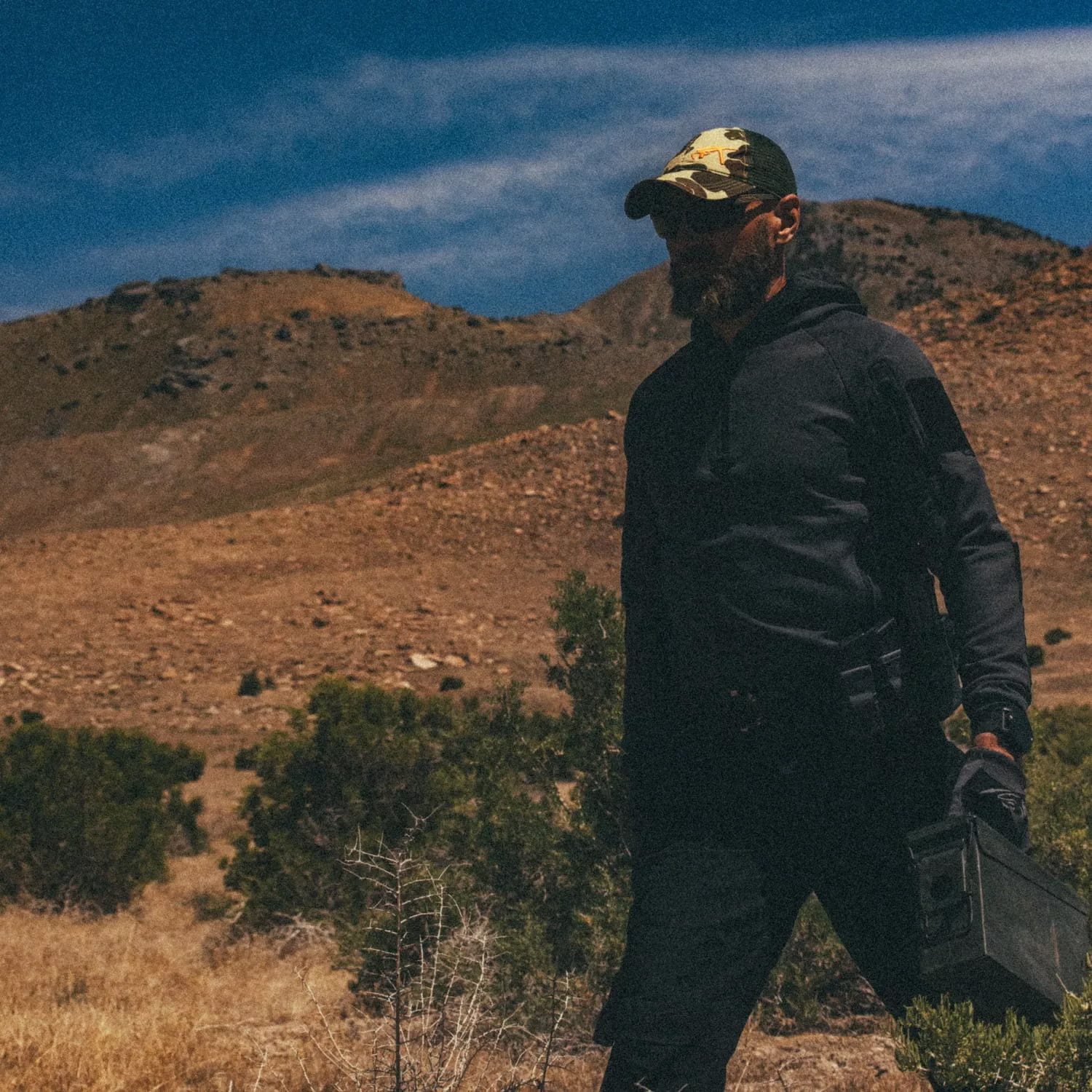 Leichte Trucker-Kappe im Duck Hunter-Design mit aufgestickter M3A1-Waffe. Weitere Informationen