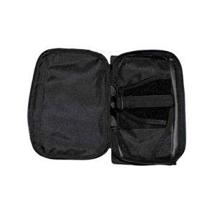 Vollständig zu öffnendes Hauptfach mit Zwei-Wege-Reißverschluss und abnehmbarer Pistolenhalterung mit Klettverschluss (Aufsteckfach mit zwei elastischen Schlaufen)