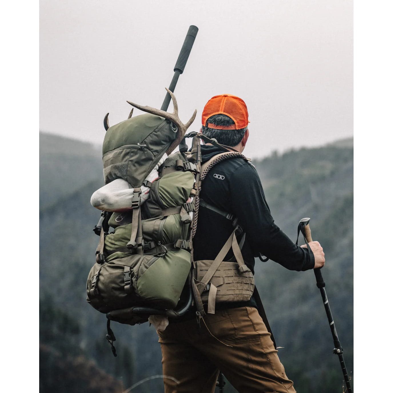 Modulare Tragesystemplattform mit Aluminiumrahmen Intex II, konzipiert für den Transport von sperriger Ausrüstung oder einer breiten Palette kompatibler Rucksäcke und Zusatzbeutel der Marke Eberlestock. Weitere Informationen