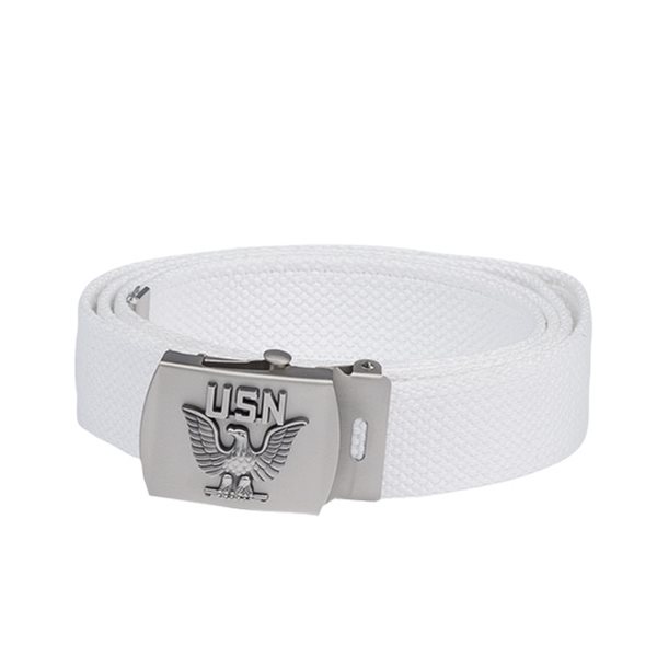 Hosengürtel mit silberfarbener Schnalle und geprägtem USN-Emblem (US NAVY). Weitere Informationen