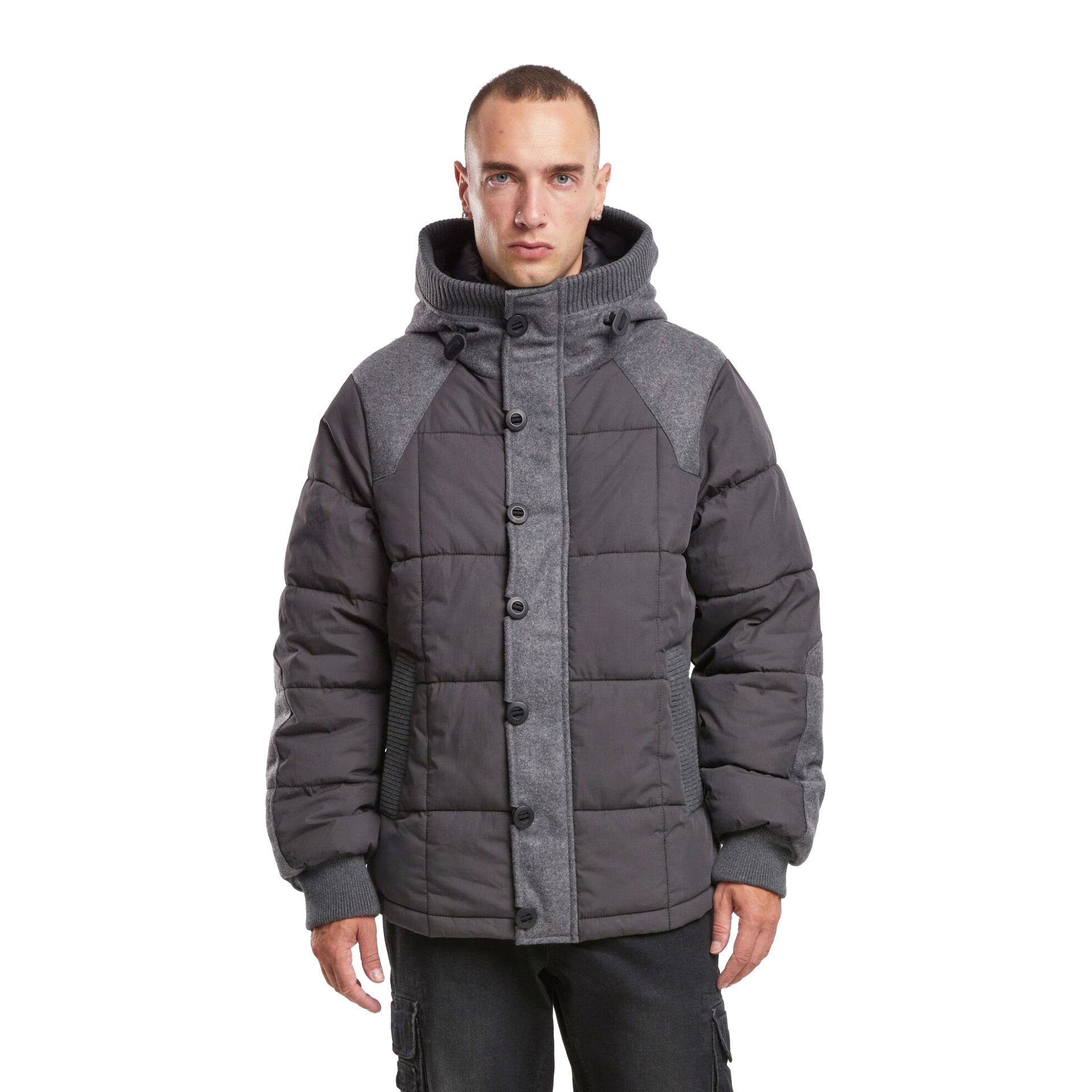 Wärmende Steppjacke mit kontrastierenden Wollbahnen für einen ungewöhnlichen Premium-Look. Weitere Informationen