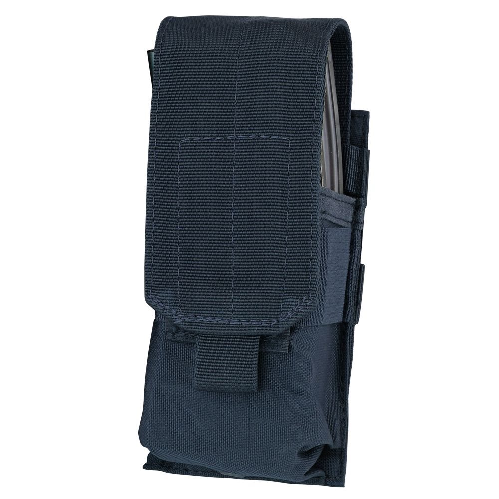 MOLLE-Tasche für zwei M4/M16-Magazine. Klettverschluss. Befestigung an der Ausrüstung mit zwei MOLLE-Ösen mit Knöpfen. Material: 100% Polyester 1000D Cordura. Abmessungen: 18 x 9 x 5 cm. Weitere Informationen