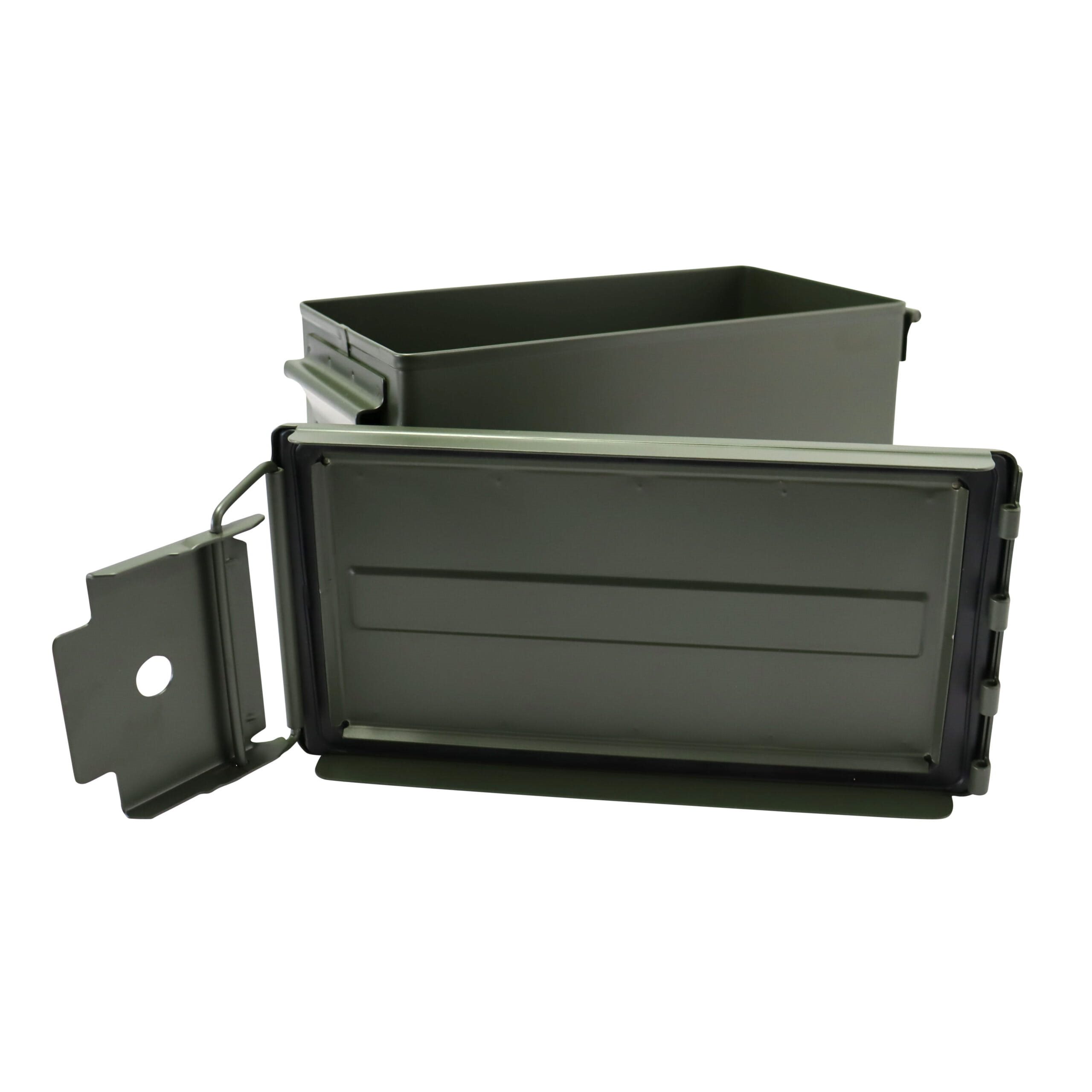 Munitionskiste aus Blech Typ US M2A1. Maße: 27x 18 x 14 cm. Weitere Informationen
