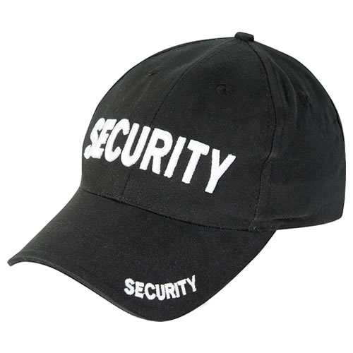 Baseballmütze mit weißer SECURITY-Stickerei auf der Vorderseite und dem Schirm. Universell verstellbare Größe. Weitere Informationen