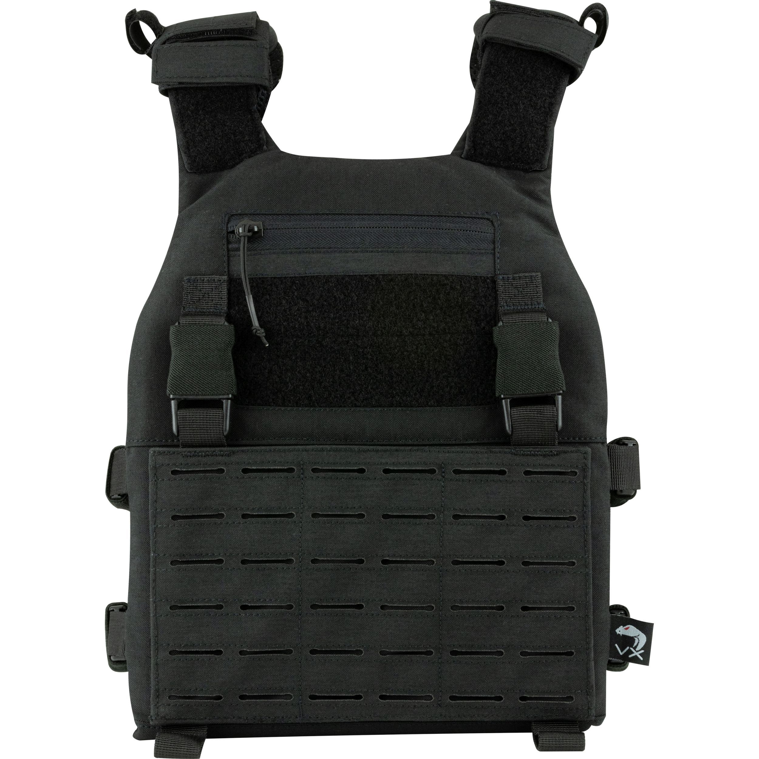 Die Vorder- und Rückseite des Plattenträgers sind mit MOLLE/PALS bedeckt, die es Ihnen ermöglichen, eine Vielzahl von kompatiblem Zubehör anzubringen. Die vordere Befestigungsschlaufe kann bei Bedarf ausgetauscht oder entfernt werden. Über dem vorderen MOLLE-Panel befindet sich ein VELCRO Panel für Patches und eine kleine flache Verwaltungstasche für kleinere Dokumente. Eine weitere Möglichkeit, zusätzliches Zubehör anzubringen, bietet das FASTEX-Schnallensystem, das mit dem VX-System kompatibel ist.