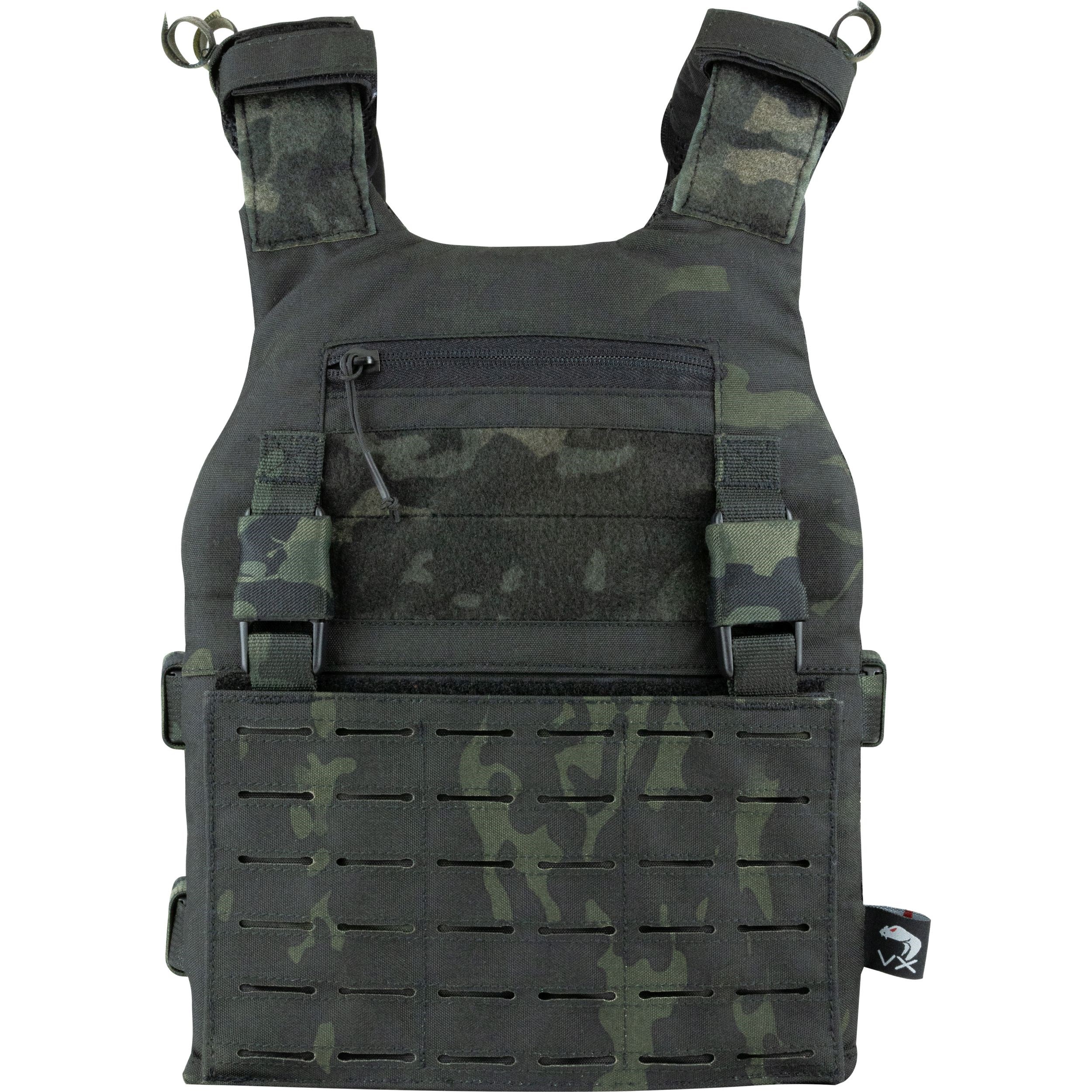 Die Vorder- und Rückseite des Plattenträgers sind mit MOLLE/PALS bedeckt, die es Ihnen ermöglichen, eine Vielzahl von kompatiblem Zubehör anzubringen. Die vordere Befestigungsschlaufe kann bei Bedarf ausgetauscht oder entfernt werden. Über dem vorderen MOLLE-Panel befindet sich ein VELCRO Panel für Patches und eine kleine flache Verwaltungstasche für kleinere Dokumente. Eine weitere Möglichkeit, zusätzliches Zubehör anzubringen, bietet das FASTEX-Schnallensystem, das mit dem VX-System kompatibel ist.