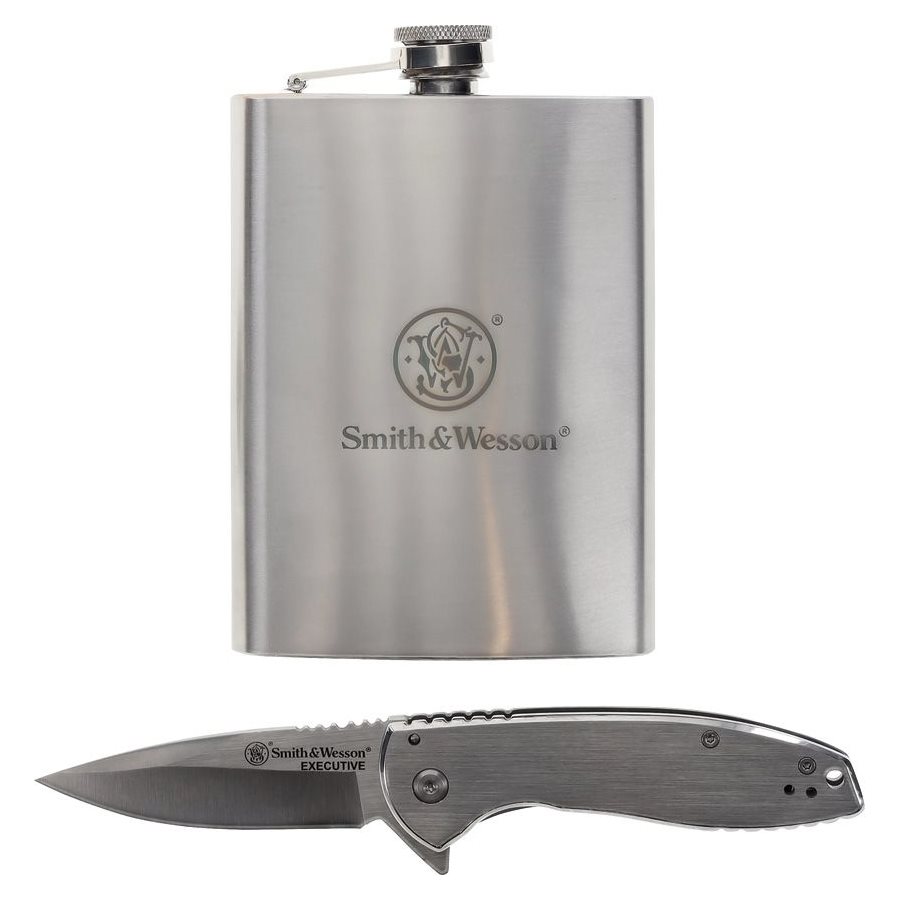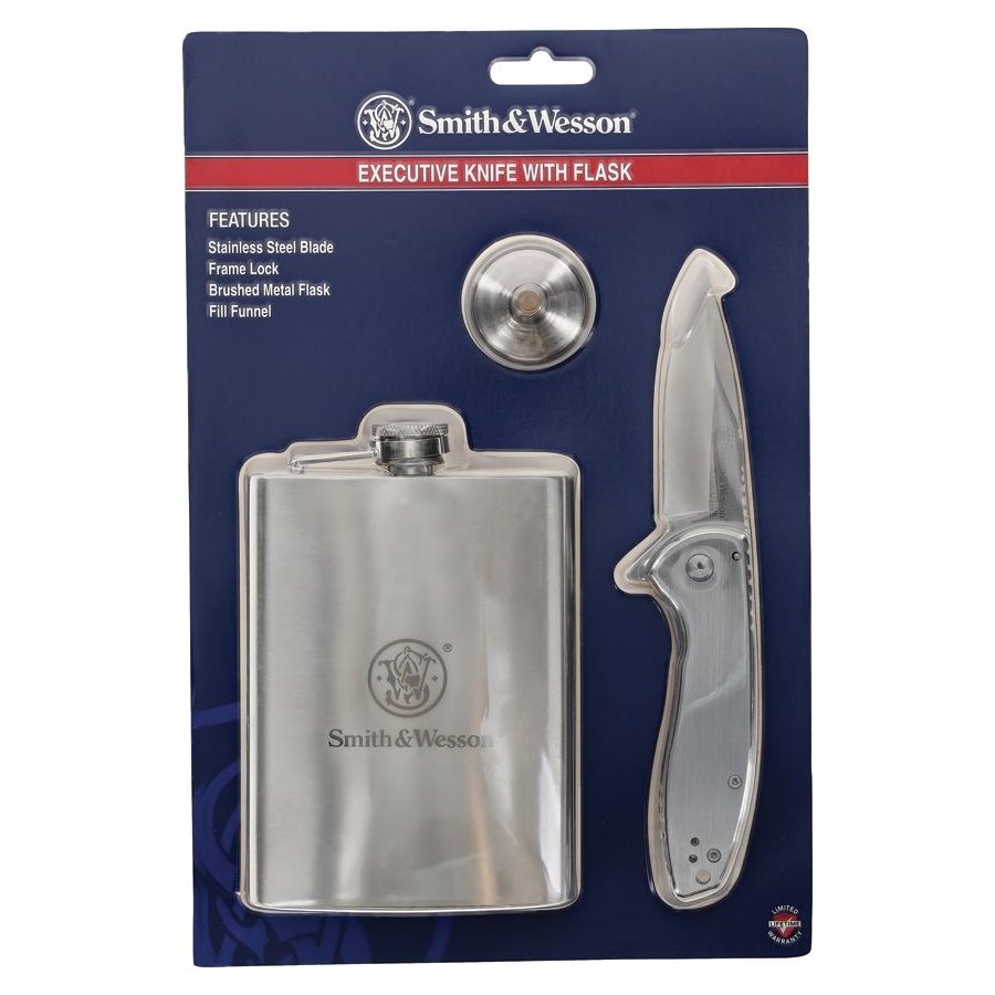 Geschenkset mit kompaktem Klappmesser, Flachmann und Trichter zum Befüllen. Weitere Informationen