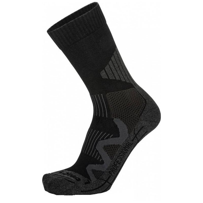 Eine hochtechnische Socke mit anatomischem Schnitt (links/rechts), entwickelt für den militärischen Einsatz und den Wachdienst. Es bietet optimalen Tragekomfort durch Polsterung an Achillessehne und Spann sowie einen bequemen oberen Saum. Weitere Informationen