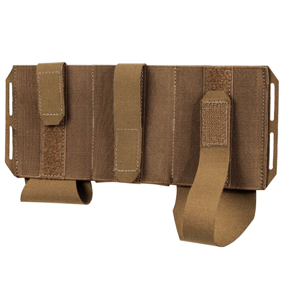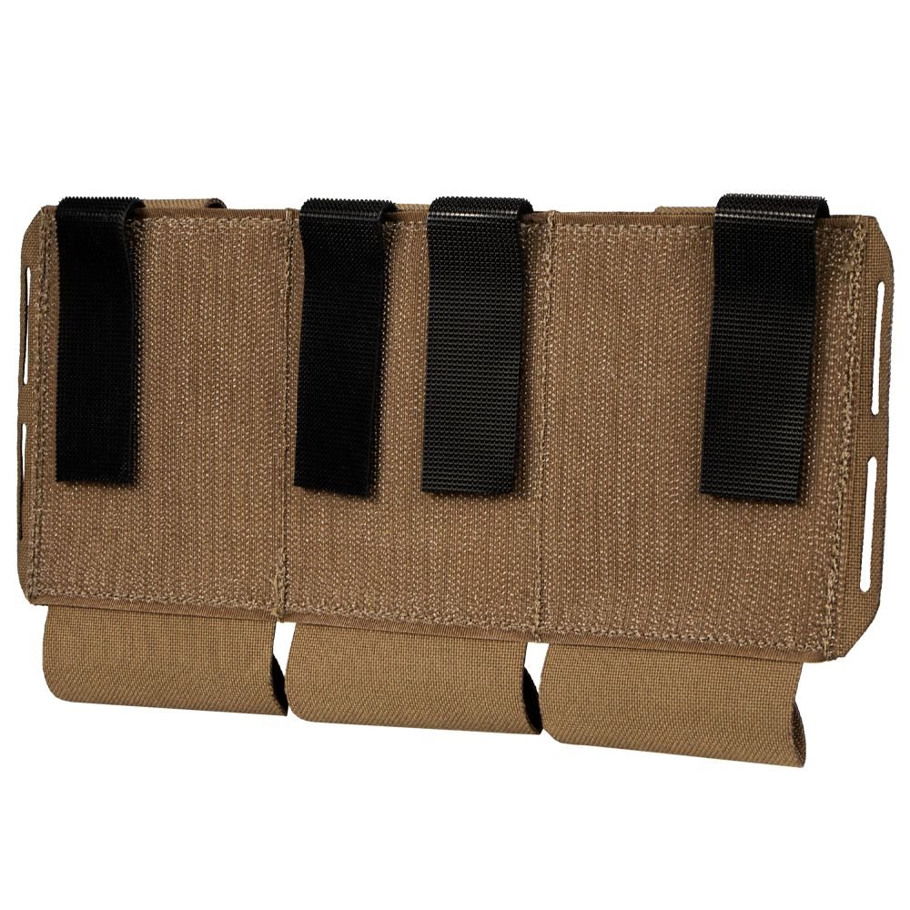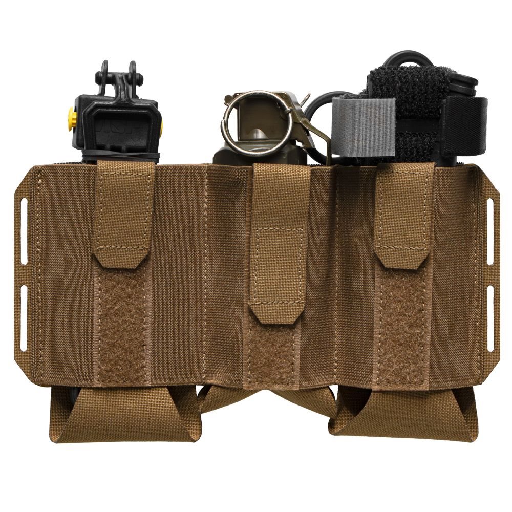 Offene Dreifach-Tasche für das Vanquish Armour System (VAS). Sie besteht aus strapazierfähigem Laminat in Kombination mit elastischem Material, das das Profil der Tasche bei Nichtgebrauch reduziert. Dank ihrer einstellbaren Höhe kann die Tasche M4/AR-Magazine mit unterschiedlichen Kapazitäten oder andere Ausrüstung aufnehmen, die Sie griffbereit haben müssen. An den seitlichen Ösen kann weiteres Zubehör befestigt werden. Die Rückseite der Tasche ist mit einem Klettverschluss versehen, der eine bequeme und schnelle Befestigung ermöglicht.
