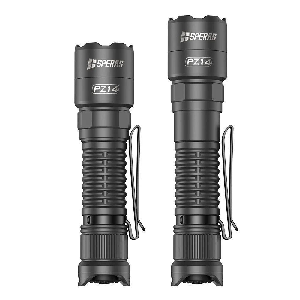 Kompakte taktische Taschenlampe mit stufenloser Einstellung der Lichtkegelbreite. Das Gehäuse der Taschenlampe besteht aus einer robusten Aluminiumlegierung mit eloxierter Oberfläche, die die mechanische Widerstandsfähigkeit erhöht. Die Taschenlampe verwendet hochwertige Luminus SFT25R-LEDs, die maximale Leistung beträgt 1000 Lumen bei einer Leuchtweite von 440 Metern. Die Stromversorgung erfolgt über einen wiederaufladbaren Akku vom Typ 14500 mit einer Kapazität von 920 mAh. Bei Bedarf können Sie auch handelsübliche AA-Batterien (nicht im Lieferumfang enthalten) verwenden. Das Aufladen erfolgt über einen in den Akku integrierten USB-C-Anschluss. Das Umschalten zwischen insgesamt fünf Modi erfolgt über einen gummierten Knopf an der Oberseite, der auch mit Handschuhen leicht zu bedienen ist. Die Breite des Lichtkegels lässt sich durch Drehen des Lampenkopfes einstellen.