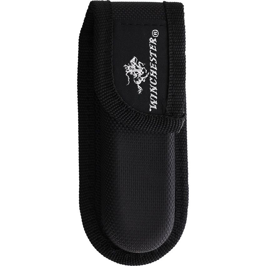 Klappmesser mit glatter Klinge und Griff aus einer Kombination von Holz und Metall. Inklusive Gürtelscheide. Weitere Informationen